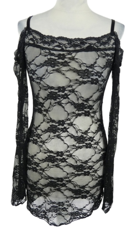 Dámska čierna čipková blúzková á tunika s volnými rameny