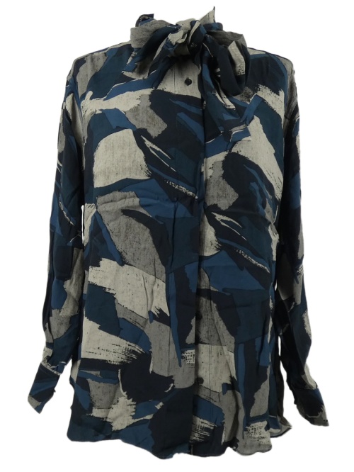 Dámska tmavomodro-béžová vzorovaná blúzka s mašlou