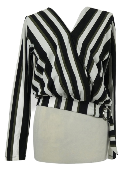 Dámska čierno-kaki-biela pruhovaná crop blúzka Amisu