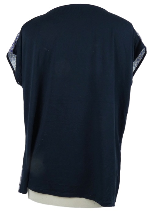 Dámska fialovo-tmavomodrá vzorovaná blúzka s potlačou