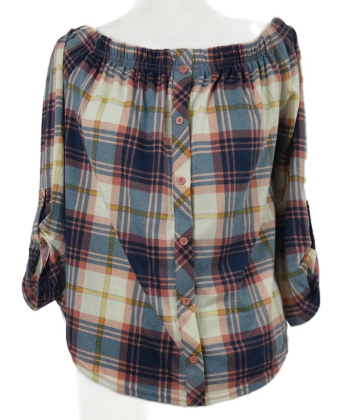 Dásmká tmavomodro-ružovo-biela kockovaná blúzka s lodičkovým výstřihem Colloseum
