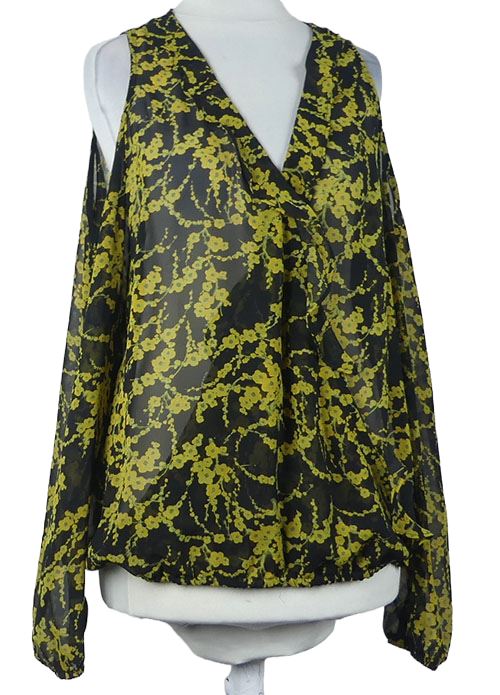 Dámska čierno-žltá kvietkovana šifónová blúzka s volnými rameny Papaya