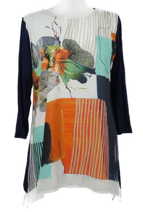 Dámska tmavomodro-farebná vzorovaná blúzka s kamienkami