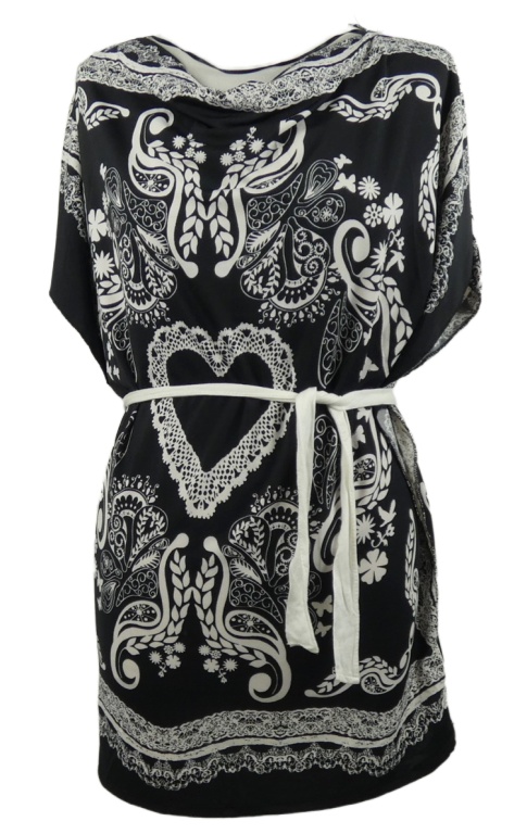 Nové - Dámska čierno-biela vzorovaná tunika s opaskom Select