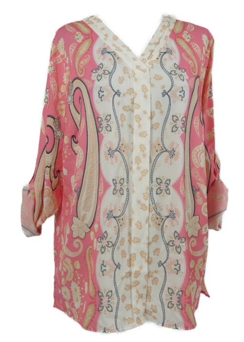 Dámska ružovo-biela vzorovaná blúzková á tunika s rolovacími rukávy