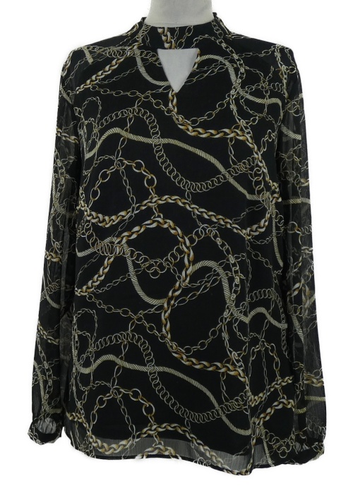 Dámska čierno-béžová vzorovaná šifónová blúzka s potiskem řetízků Esprit
