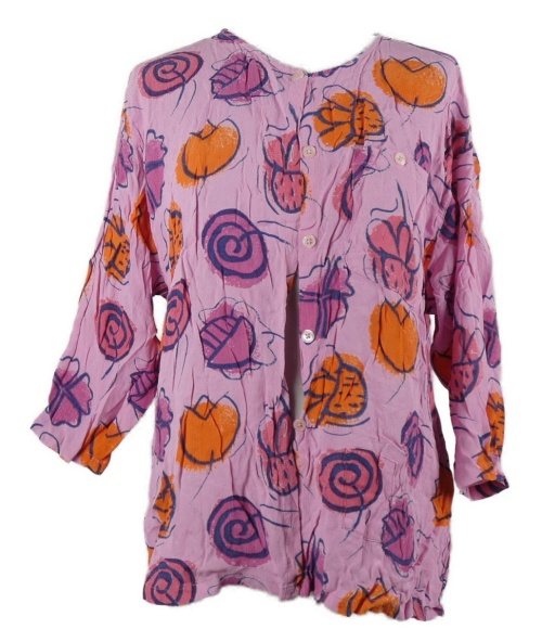 Dámska ružovo-oranžová kvetovaná šifónová blúzka