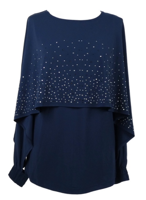 Dámska tmavomodrá blúzková á vrstvená tunika s kamienkami