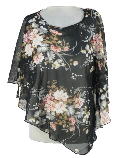 Dámska čierna kvetovaná šifónová blúzka