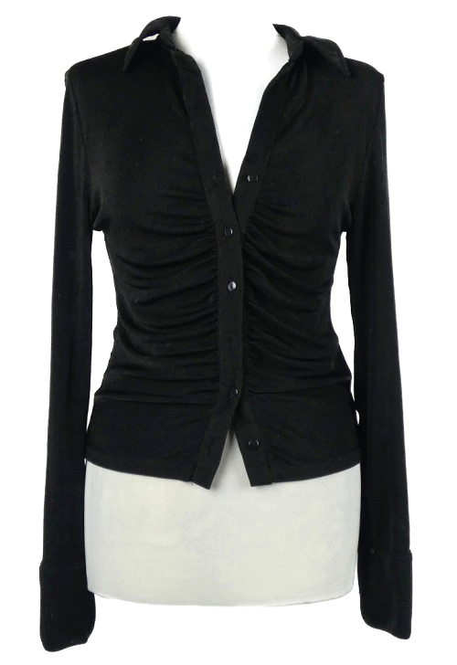 Dámska čierna crop řasená blúzka