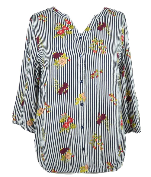 Dámska bielo-tmavomodrá pruhovaná blúzka s kvetmi Laura Torelli