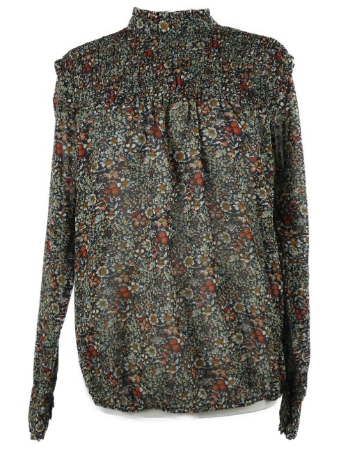 Dámska čierna kvietkovana šifónová blúzka so stojačikom Amisu
