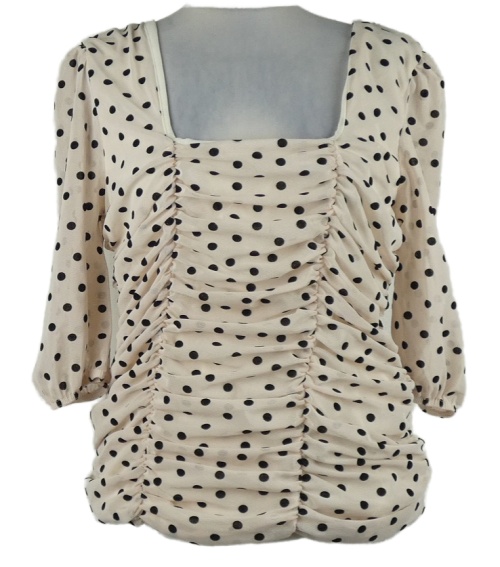 Dámska smotanová bodkovaná tylová řasená blúzka Curvissa