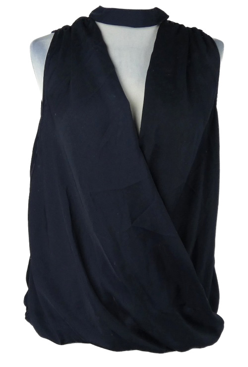 Dámska tmavomodrá překřížená blúzka s chokerem