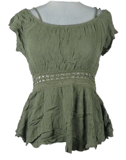 Dámska khaki strukturovaná blúzka s čipkou Colloseum