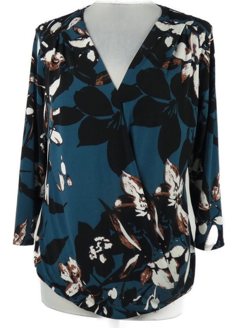 Dámska petrolejová překřížená blúzka s kvetmi Papaya