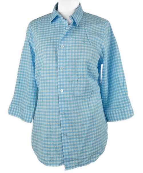 Dámska světlemodro-biela kockovaná krepová blúzková á tunika Walbusch