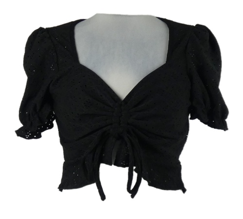 Dámska čierna madeirová crop blúzka so stahováním Shein