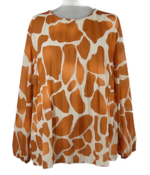 Dámska oranžovo-biela vzorovaná šifónová plisovaná blúzka