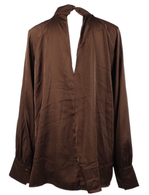 Dámska hnedá saténová blúzka so stojačikom H&M