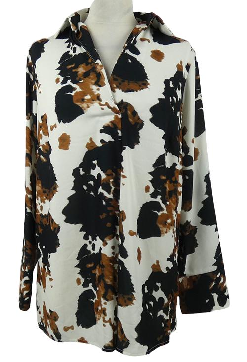 Dámska bielo-čierno-hnedá vzorovaná blúzka Wallis
