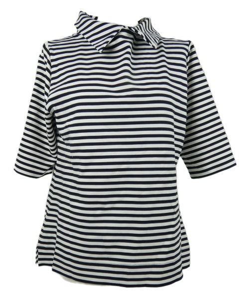 Dámska čierno-biela pruhovaná blúzka s golierikom Gallery