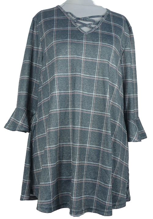 Dámska sivo-ružová kockovaná blúzková á tunika so zkříženým výstřihem
