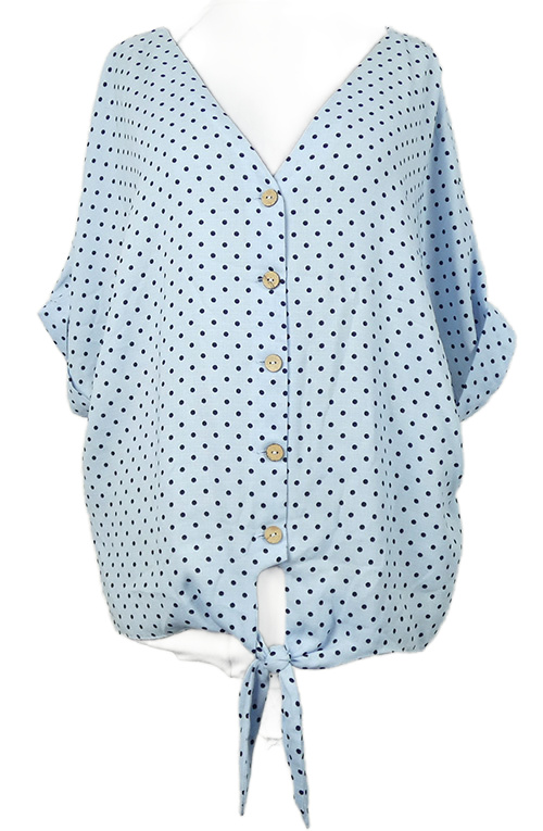 Dámska svetlomodrá bodkovaná blúzka s uzlom George