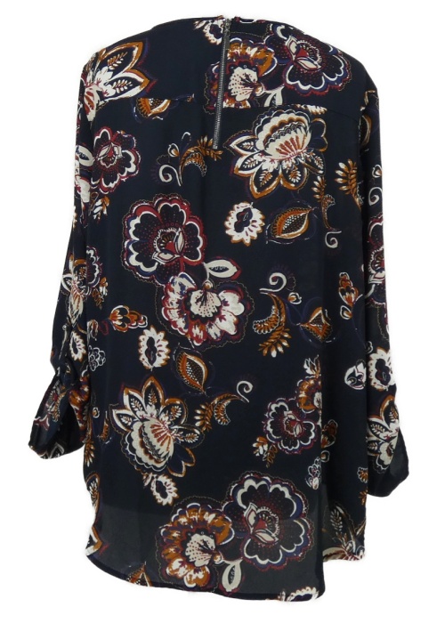 Dámska tmavomodrá kvetovaná šifónová blúzka