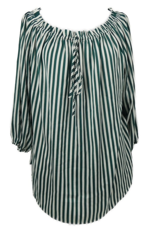 Dámska zeleno-biela pruhovaná blúzka s lodičkovým výstřihem H&M