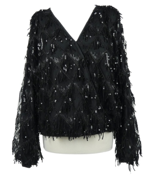 Dámska čierna tylová blúzka s strapcemi s flitrami Shein