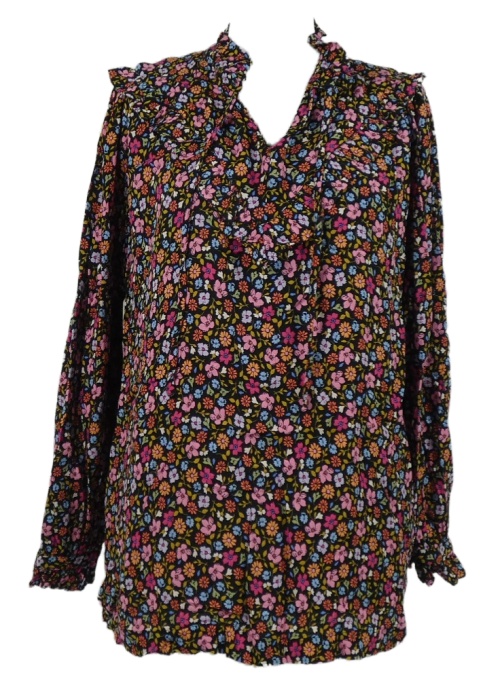Dámska čierno-farebná kvietkovana blúzka s volánikom M&S