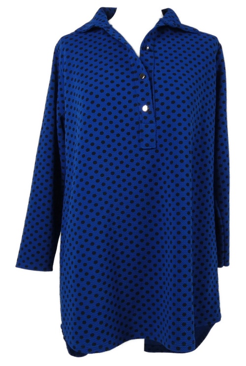 Dámska kobaltově modrá blúzková á tunika s bodkami
