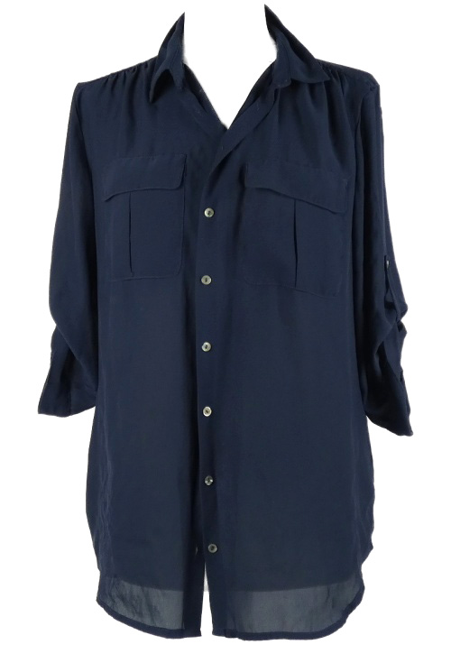 Dámska tmavomodrá šifónová blúzka s rolovacími rukávy H&M