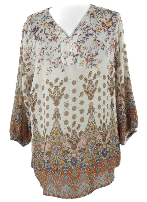 Dámska bielo-tehlovo-modrá vzorovaná šifónová blúzka Atlas