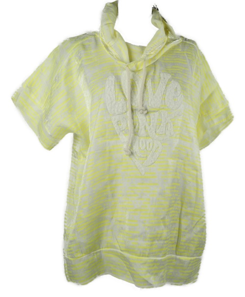 Nové - Dámske bielo-žlté pruhované tričko s nápisom a golierom