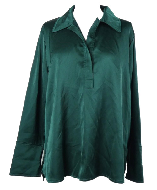 Dámska tmavozelená saténová polo blúzka Gallery