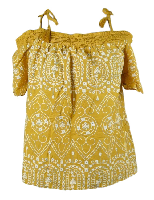 Dámska okrovo-biela vyšívaná blúzka s volnými rameny Falmer