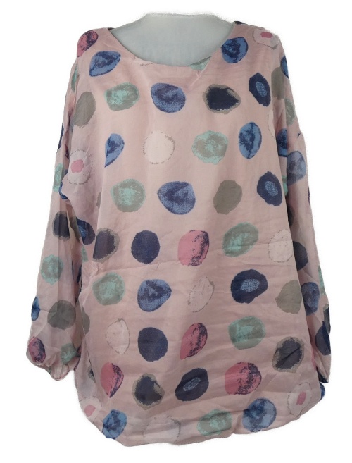Dámska ružová bodkovaná šifónová balonová tunika Tesini