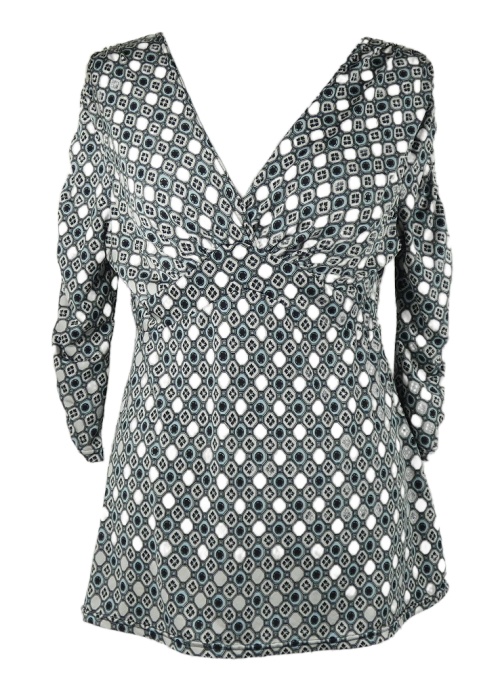 Dámska čierno-smetanovo-svetlomodrá vzorovaná tunika s hlubokým výstřihem