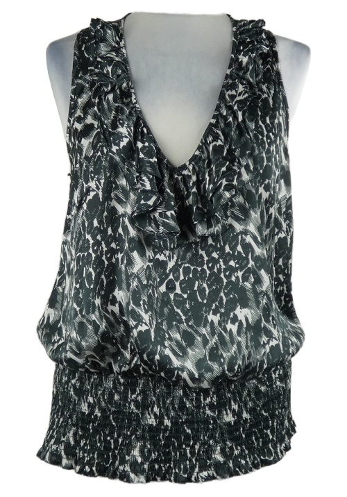 Dámska tmavošedo-biela vzorovaná blúzka s volánikmi New Look