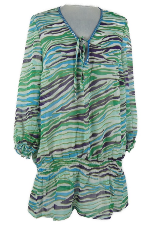 Dámska zeleno-modro-fialová vzorovaná šifónová plážová tunika