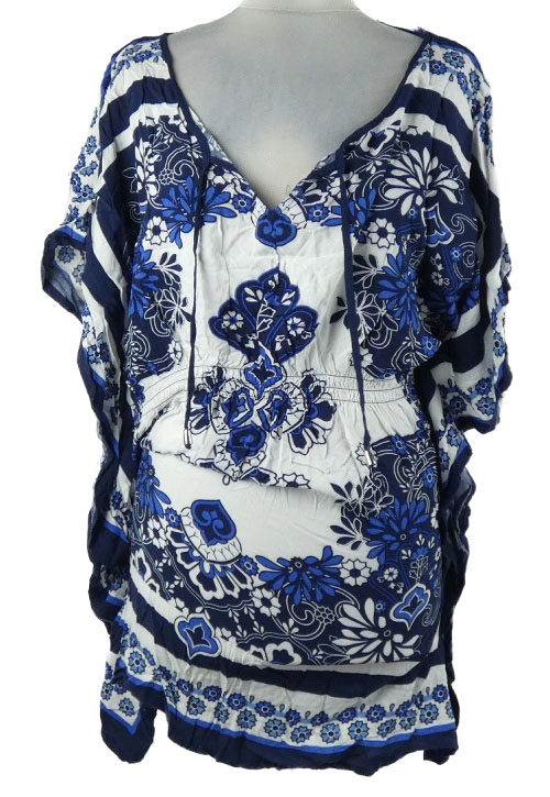 Dámska bielo-modrá vzorovaná plážová tunika TU