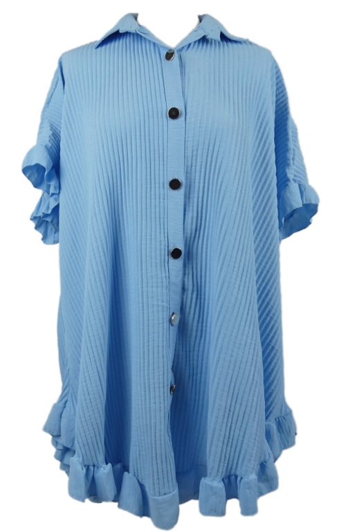 Dámska svetlomodrá plisovaná blúzková á tunika s volánikmi