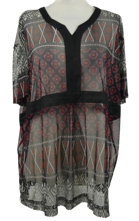 Dámska čierno-vínovo-biela vzorovaná tylová tunika