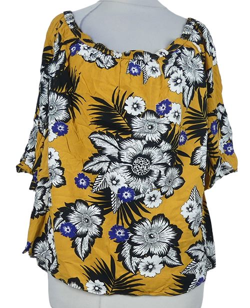 Dámska horčicová kvetovaná blúzka s lodičkovým výstřihem Papaya