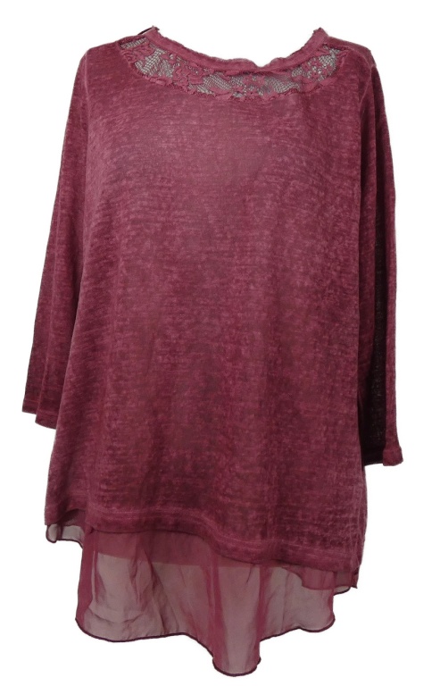 Dámska vínová melírovaná tunika s čipkou a šifonovým volánem Janina