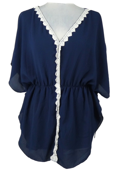 Dámska tmavomodrá šifónová blúzka s madeirou JT exclusive