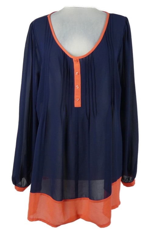Dámska tmavomodro-ružová šifónová tunika s plisováním