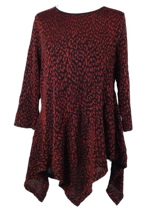Dámska červeno-čierna vzorovaná trblietavá tunika s cípy Roman